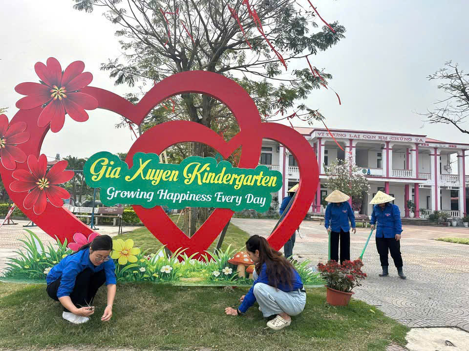🌼 Qua đó tạo cảnh quan “Xanh – Sạch – Đẹp – An toàn”, góp phần mang đến môi trường học tập thân thiện cho các bé và chào đón Ngày hội lớn của đất nước.