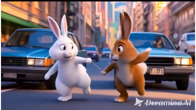 Vào một buổi sáng mùa xuân ấm áp, hai chị em Thỏ Nâu và Thỏ Trắng xin phép mẹ ra phố chơi. Mẹ đồng ý và dặn: “Các con đi đường cẩn thận nhé!”. Hai chị em vâng dạ rồi nhảy chân sáo ra khỏi nhà.