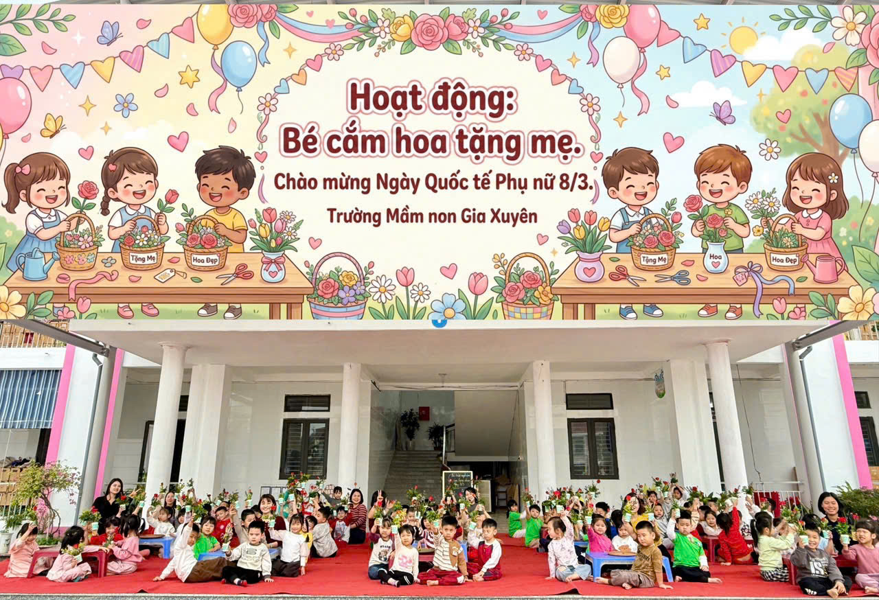 💐 Hòa trong không khí rộn ràng của Ngày Quốc tế Phụ nữ 8/3, các bé tại Trường Mầm non Gia Xuyên đã tham gia những hoạt động trải nghiệm thật vui tươi và ý nghĩa để gửi gắm tình cảm yêu thương tới bà, mẹ và các cô giáo.